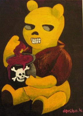 お馴染のディズニーキャラクターやアンパンマンなどをドクロにしたメキシカンスカルアート作品28点と、少年犯罪のバンド活動写真等を展示しています。メキシカンスカルアートと言えばグアダルーベ・ポサダ(Jose