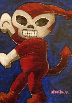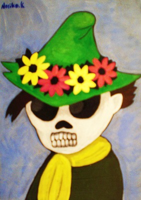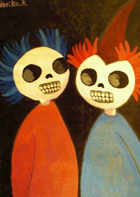 Guadalupe Posada)などが想起されます。死から生への再生を楽しく祝うメキシコでは、ドクロが生活の一部に密着しています。