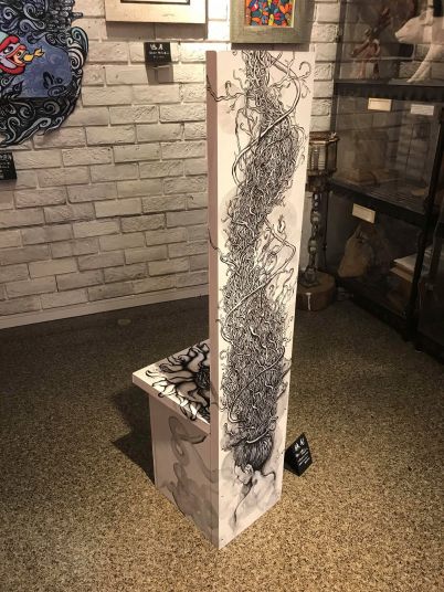 | メトロギャラリー飯田では、イトウ ミオ作品展「憂さ晴らし」を開催しています。横5m、縦2メートル弱の巨大な作品「獅子」を中心に椅子をモチーフにした立体作品「枝毛」等、計5点を展示しています。会期の間、作品を入れ替えます。是非、お越し下さい。 |