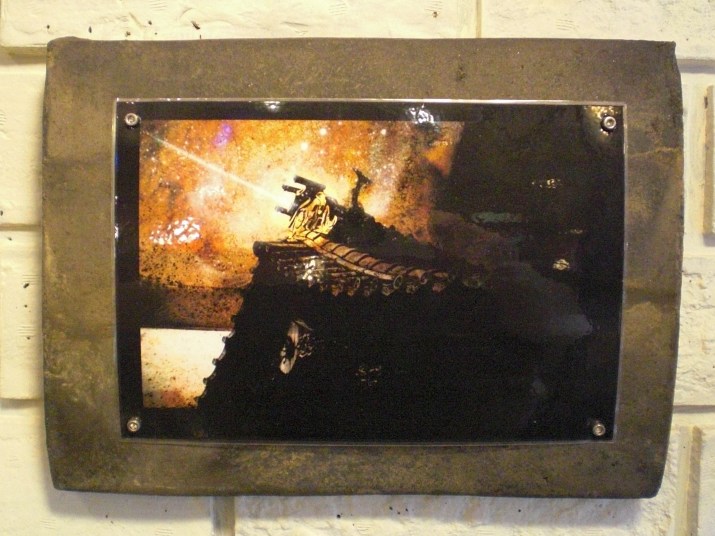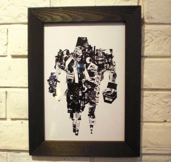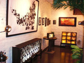 環境をテーマとした大作「ごみかいじゅう」を中心に、古木・古瓦を利用したCGアート作品9点。