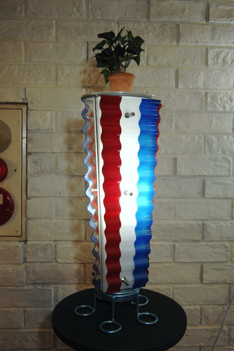 三面の波板を組み合わせたフランス国旗の照明スタンドです。