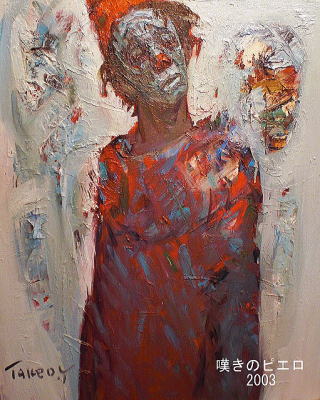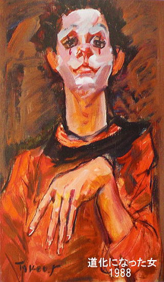 私が知る限り、山本武夫は大酒呑みという以外世間の風評とは異なり、繊細でとても人に気を遣う人物だ。おそらく、人に気を遣いすぎる余り疲れ果てて壊れてしまう部類に属する人間であり、リアルタイムの自分を画でしか表現することしかできない不器用な作家ではないかと思う。それは、50年間の集大成というべき画集からも本来の姿が伺える。リアルに描かれた自画像の眼光は挑戦的であり世の中を見透かしているが、ピエロや子供に扮した武夫自身のほとんどは、やさしくも哀しく孤独でとても弱く無垢だ。それはまるで、描くために生まれたのか、産まれたから描くのか悩み続け、弱さと自分が生きていることの意味を投影することにより自らの存在意義を確かめているかのようである。