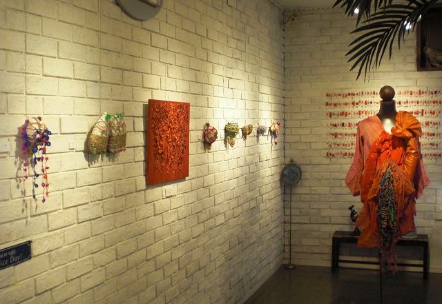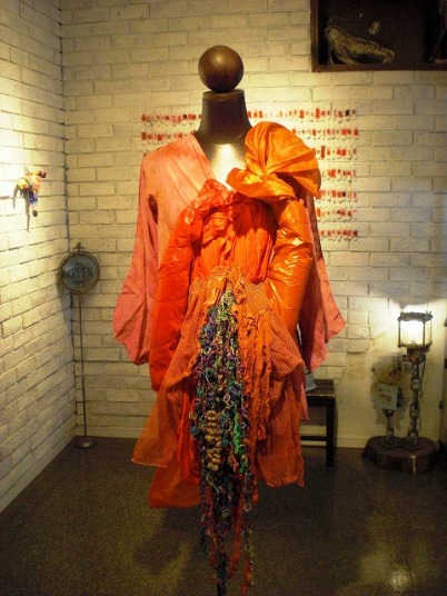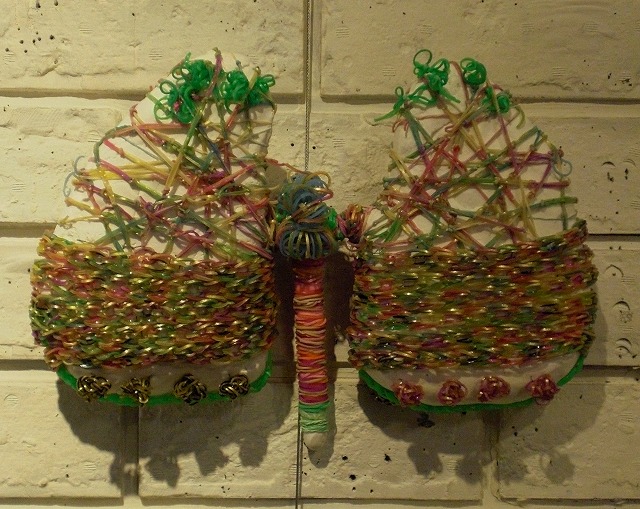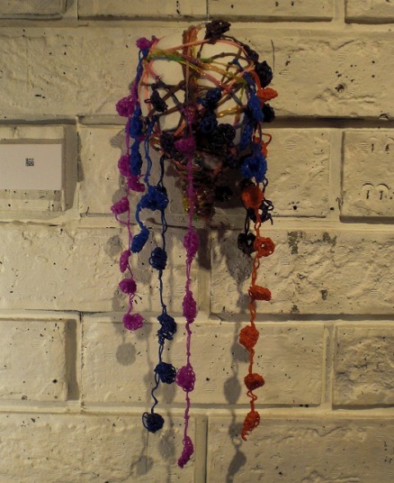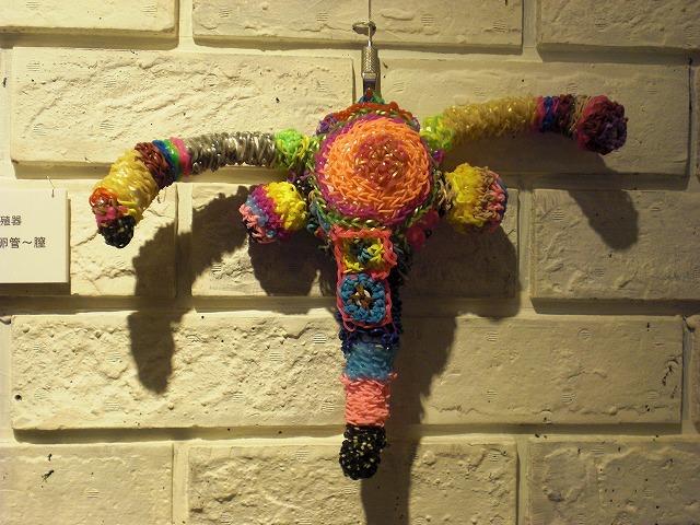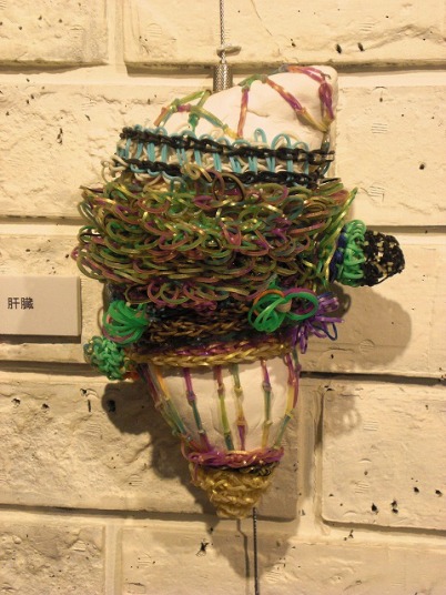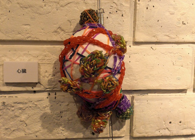 | メトロギャラリー飯田では、東京在住のアーティスト・トニオの‐WOMON 2‐を開催 しています。輪ゴムで制作された、五臓及び女性特有の生殖器・子宮と脳、計7点、SharArt2016 の入選作品「WOMON 2」、血が付着した生理ナプキン291ケ、痛みと苦しみを輪ゴムを編んで腹から垂れ流した衣装1点、計10点を展示しています |